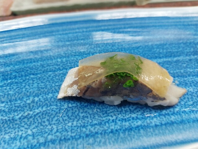 付けだしのごま豆腐から始まり、平目、ウニ、鮑とジュレの組み合わせ、大トロ、車海老とその頭の素揚げ、玉子、真あじの昆布のせ、うなぎの素焼きと夏野菜の組み合わせ、炙り烏賊、大トロの炙り、穴子の素焼き