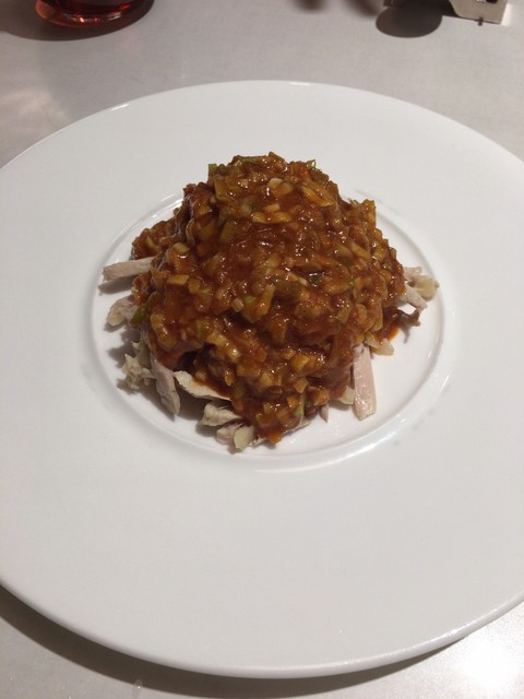 ・茹で薄切り黒豚肉の旨辛ソース