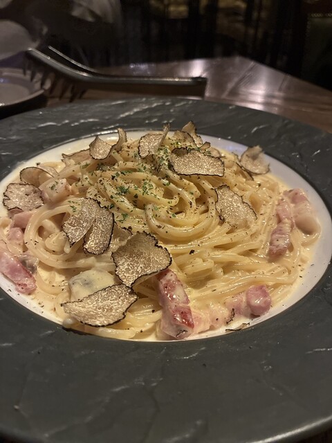 どこへ行ってもポルチーニとトリュフの物は必ずオーダーする程の大好物ですがトリュフが見た目でもわかるようにたっぷり入っていて濃厚で美味しく大満足♡