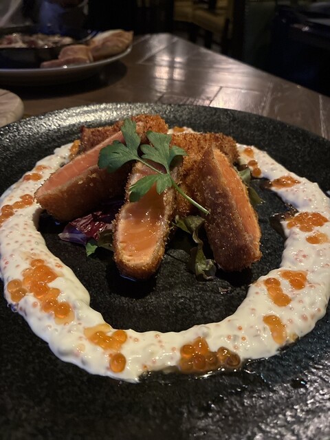 季節のオススメメニューにあり気になってオーダー 外はサクサクで中はしっとり いくらがたっぷり入った自家製タルタルソースが絶品♡