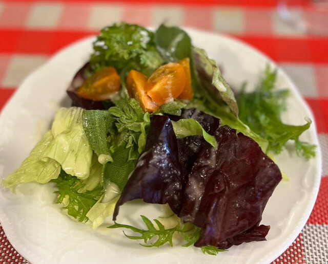 ドレッシングは、シンプルだけどクリーミーなフレンチドレッシングで、野菜の味がきちんと主役のサラダ。
