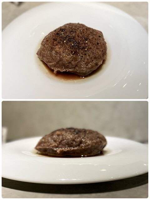軽く塩胡椒で味付けしてあり、肉汁がソースになります。繋ぎをほとんど使用していないそうで…