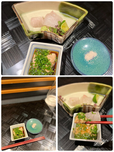 ‥トラフグの身と皮の“てっさ”を自家製のちり酢で和えてあります。