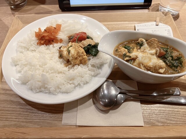 トッピングに卵とチキンにして栄養バッチリ午後からも頑張れる…そんな気にしてくれるカレーです。