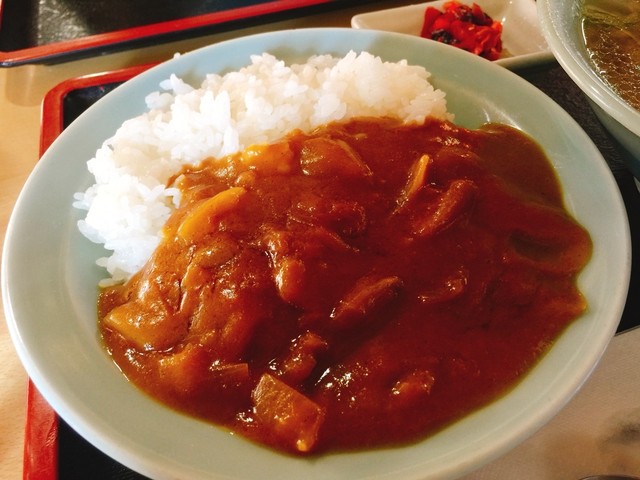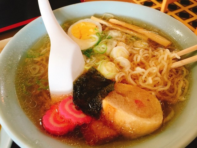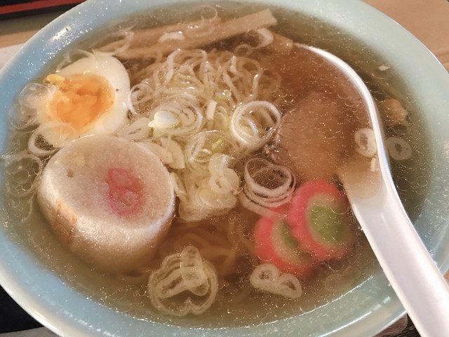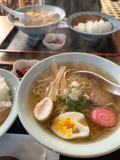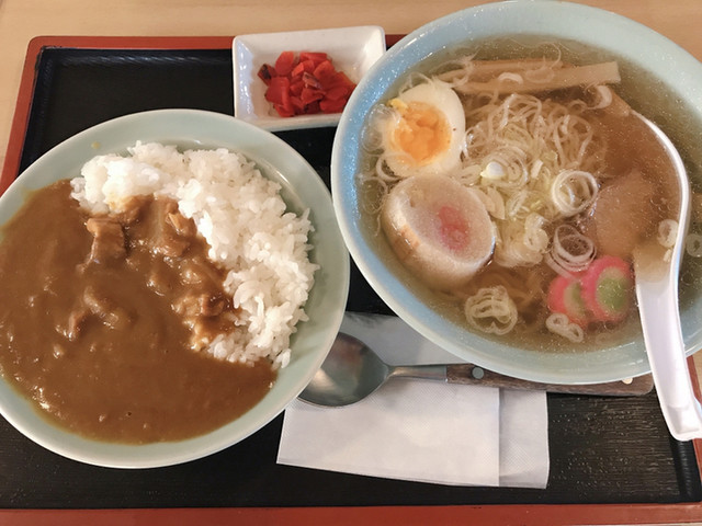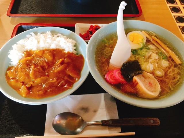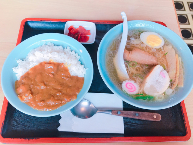 写真で塩ラーメンに見えるけど、醤油ラーメンなんですが。 昔ながらのあっさりラーメンでカレーとラーメ