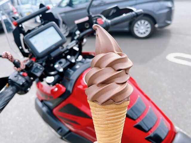 最近ハマってるチョコ味がかなりビターで濃厚なのです♪気温が34℃もあり、溶けました。
