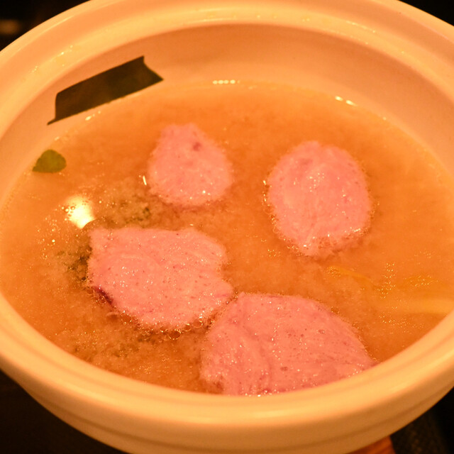 杜仲高麗豚と紫甘芋のトロロ鍋はトロロにかけて