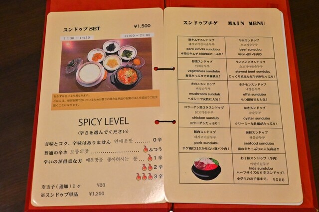 店名の通りスンドゥブがメインのお店
