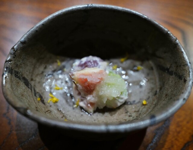 白茄子素麺、すっぽん銀杏、甘酒のアイスいちじく美味しかった〜