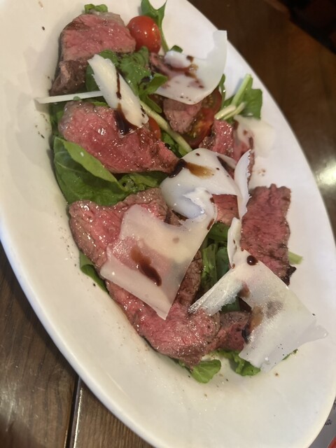 トマト苦手だったけど、使っているトマトがとにかく味が濃くて甘くて、感動レベルだし、ドレッシングが美味しい!生ハムも最高!