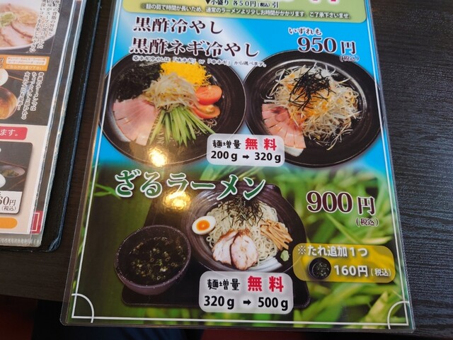 中太コシがしっかり増量500gでも値段いっしょでした又つけダレは和風ちょい濃い目なのでトッピングにお酢とラー油にわさびをたし旨みを調整さらに美味しく食べやすくなりました。ごちそうさま完食です。