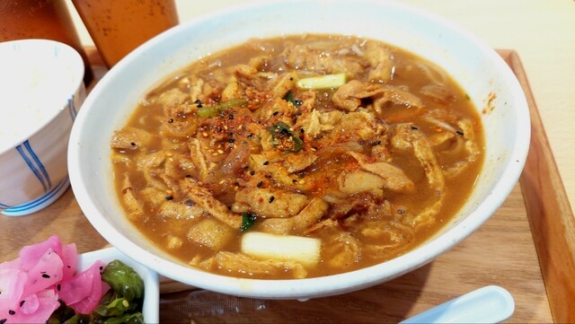 カレーそば 500円 ごはん盛り放題 麺大盛無料 漬け物盛り放題 味噌汁かスープ付き