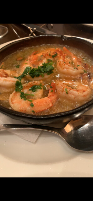 海老のアヒージョ〜大きな海老がプリっプリ〜さらっとして‥いますが〜ガーリックたっぷりで‥味わい深い〜絶対外せない逸品〜♡‥