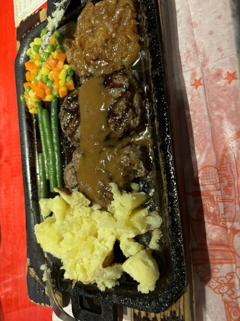 横浜人のソウルフード、ハングリータイガーに入店。E-PARKを使い、ほぼ待ち無し。ハンバーグスペシャルセットを注文。昔に比べると良く焼くようになってしまい残念。スープはカントリーコーン、サラダドレッシングはいつものサウザンアイランド。何とも言えないオリジナルソースをつければポテトも至福の味になります ダブルを食べ切れないため注文出来ない程歳を重ねた事に唖然とします 狩場本店に行きたいが、車でないとアクセスが悪すぎます