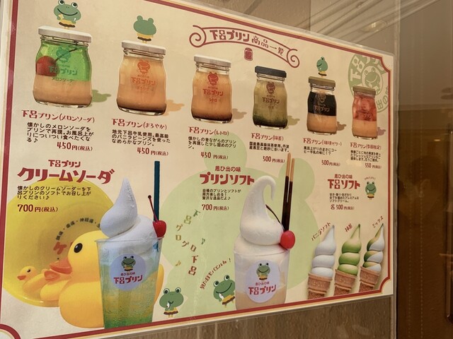 鏡の前にプリンを置いて、写真撮ったり、ケロリンの椅子に座って食べれて、アミューズメント感溢れてました。