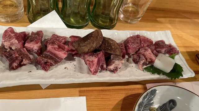 宮崎地鶏のたたきはコリコリです!ナントこのうまさ!評判通り!てす。