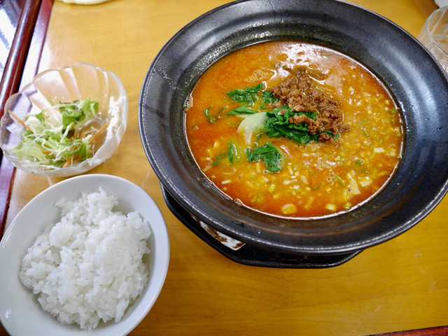 800円で食べれるサラダ、ライス付きの担々麺ランチ