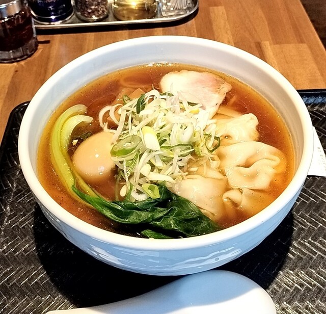 この日の「醤油ワンタン麺」は、大きなワンタンにいつもの美味な醤油スープ。