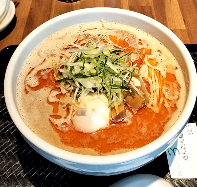 レギュラーメニューのたんたん麺の胡麻感やスパイス風味、辛味もありつつ、豆乳により全体的に少しマイルドな味わいでした。