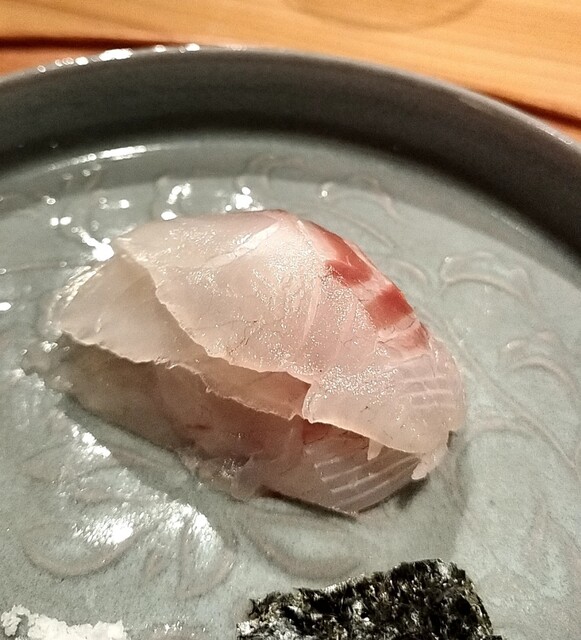 真鯛のお刺身も寝かせ具合が絶妙で、ブリブリとした食感とねっとりの間くらい。