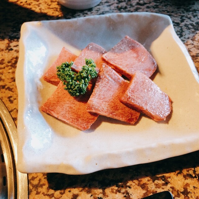 厚切り塩タン、特選はらみ、特選カルビ、特選ロース、つらみ、ミノ、ホルモン、てっちゃんとどれも美味しく頂きました。