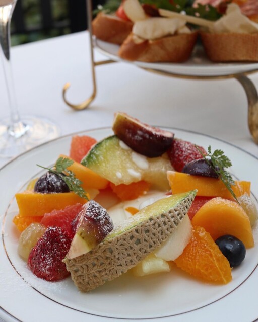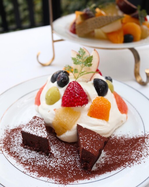 3段プレートに、季節のフルーツ、