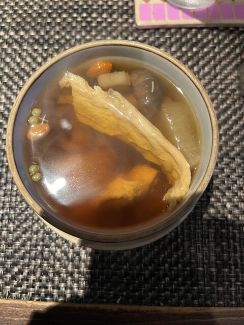 次に蒸しスープが来ます、色々な具材が入っており複雑な味なのかなと思いきや飲みやすく食材がたくさんで楽しめました。