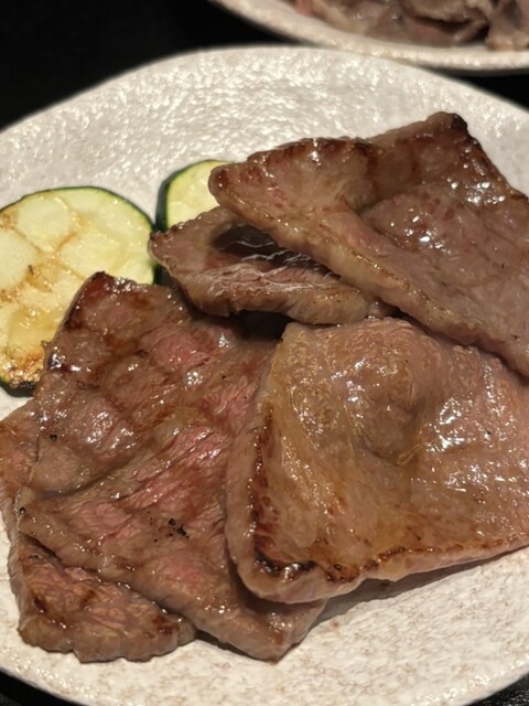 焼肉の主役である牛タンは薄切りで提供され、ネギサラダと一緒にいただくとさっぱりと楽しめます。また希少部位のつらみ(牛の頬肉)は薄切りで旨みが凝縮され、なかなか出会えない一品でした。そして和牛タレ3種(カイノミ・イチボ・ランプ)は部位ごとに産地が違い、それぞれ見事なサシと柔らかさ。タレとの相性も良く、ご飯が止まりません。