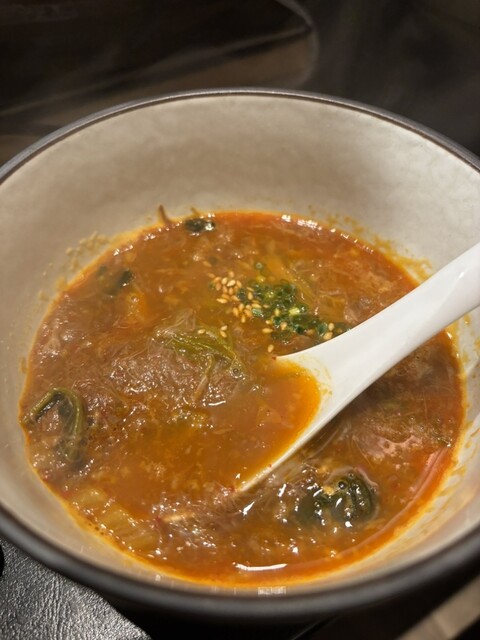 〆には香ばしい石焼ビビンバと、コク深いけれど食べやすい辛さのテールスープを注文。どちらも満足度が高く、最後にいただいた瀬戸内レモンのシャーベットが爽やかで、まさに完璧なコースの締めとなりました。温かいお茶までいただけて心も体も大満足。炭火で焼く和牛を完全個室で楽しめる特別感、接客の丁寧さも相まって、記念日や大切な食事にもぴったりなお店だと思います。