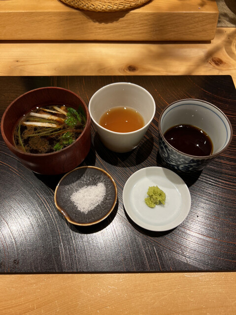 つゆ、大根のおろし汁、鴨出汁、わさび、