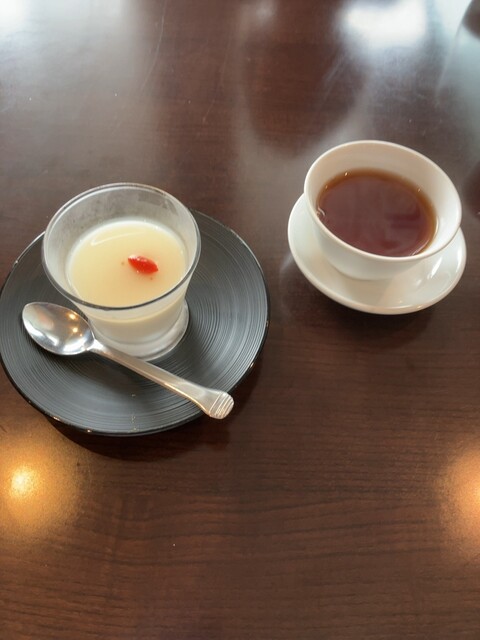 その後、キノコのスープ・大根もち(単品)・小籠包(単品)・ターサイ・大海老のチリソース(メイン選択)・黒酢酢豚(メイン選択)・ワンタンメン・最後に杏仁豆腐