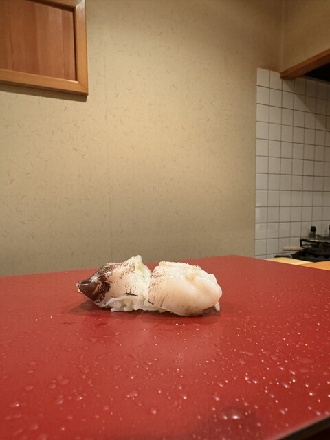 ○いか (新イカ) シャリとネタのバランスが見事!やっぱ美味しい☆若干甘めの酢飯、シャリはどちらかと言うと柔らかめで粒は小さめ。ネタと良く馴染んで、このシャリが好みすぎる☆