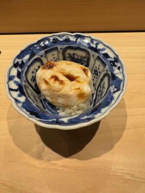 表面に焦げ目がついた焼き白子はマシュマロの様にふっくらふわふわ!弾力があって中がとろっとろ。