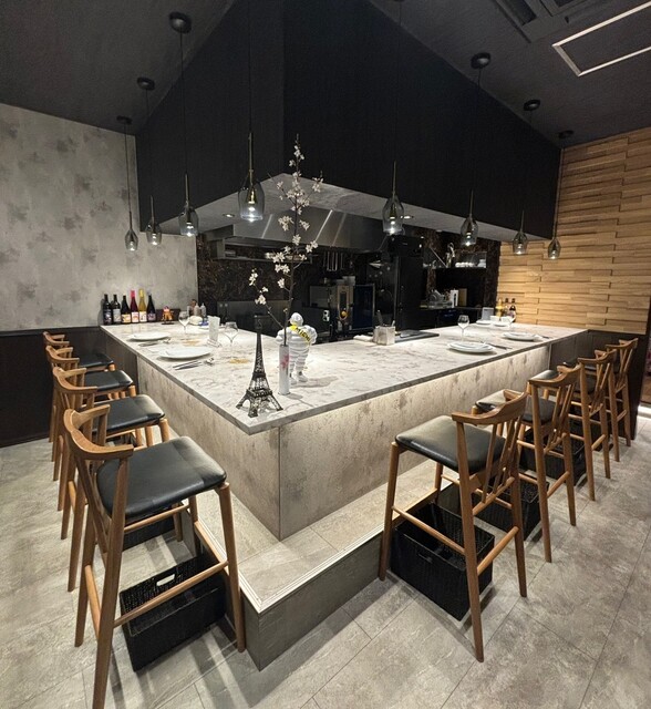 ドアを開けるとスタイリッシュな大理石のカウンター8席のみ、大人の隠れ家フレンチ。