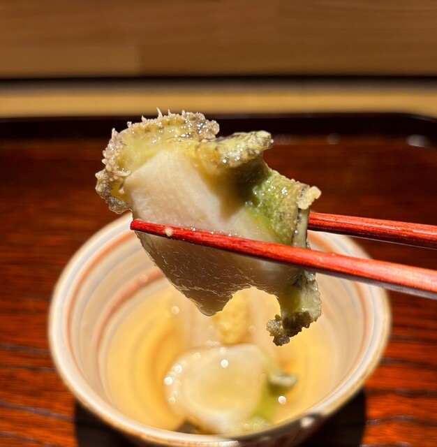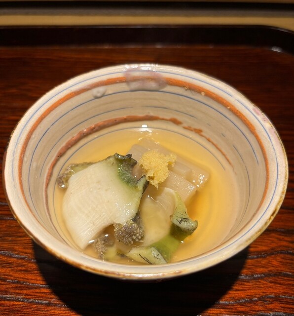 鮑の食感と白ズイキの食感の対比が楽しい。
