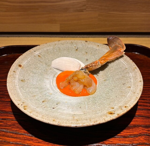 本来ならこのシーズンは毛蟹が楽しめるのだけど、あまりの価格高騰で、この日は甲殻類のお料理をいただきました。