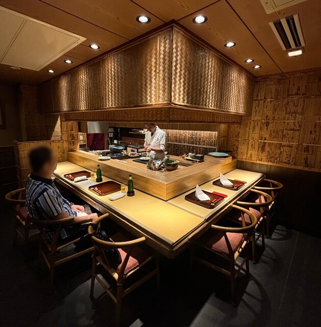 暖簾に店名が入ったシンプルな外観、店内に入ると凛とした落ち着いた和の雰囲気。