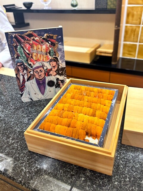 パッケージは『サラリーマン金太郎』などを描いた漫画家の本宮ひろ志とコラボの漢の雲丹。