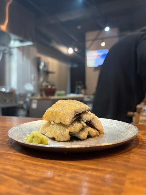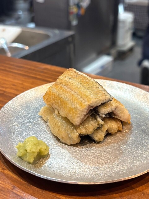 炭火で皮面をパリッと焼き上げられ、山葵をのせると香ばしさと共に鰻の旨みがシンプルに伝わります。
