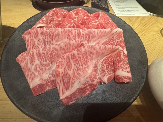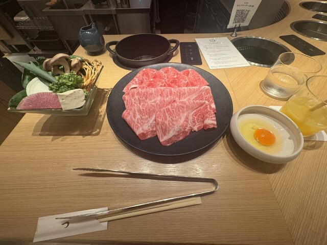 すき焼きかしゃぶしゃぶかですごく悩みましたが、1番人気の「薩摩牛」ブリスケ50gと「黒宝豚」の肩ロース60gのすき焼きにしました!