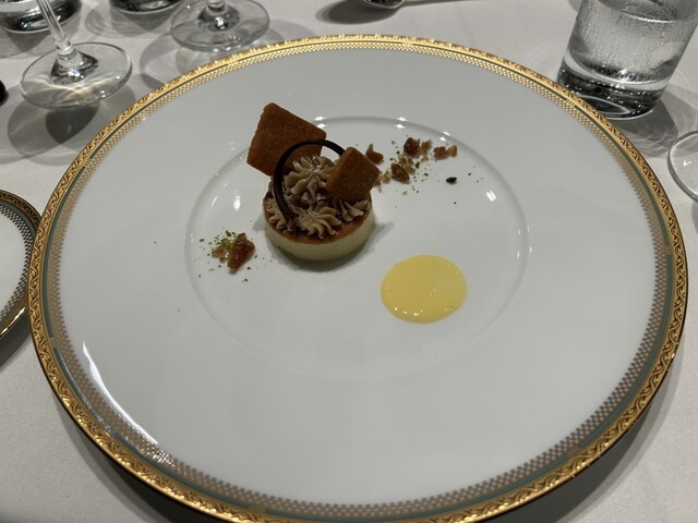 舌ビラメとズワイ盛ムースのヴァブールアメリケータソースとフィーヌゼルプ