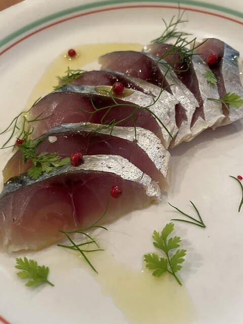 注文は鯖のマリネと、娼婦のスパ。あとは変化のクリームとミートソースのリガトーニ。
