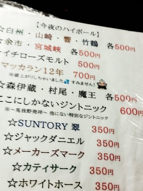 ひろめ市場の奥、ひろめばるにある店。L字型のカウンター数席。バーのようなお洒落な雰囲気。