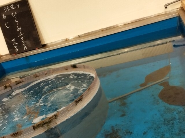 川崎駅付近、銀柳街の外れの路地にひっそりある店。店内は、生簀を囲うコの字型のカウンターがあり、高級感のある雰囲気で、割烹風。テーブル席もけっこうあり、キャパはそこそこだが、人気店なので予約はしておいたほうがよい。