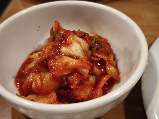 生ビールスーパードライ。普通に旨し。お通しはもやしナムル、最初の強制的に出てくる肉は、塩鶏ももと塩豚。そんなに量は多くなく、中々美味。