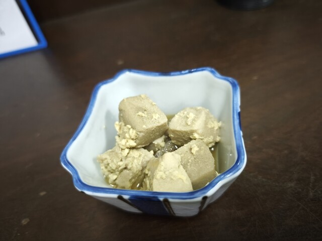 生ビールは一番搾り。お通しは高野豆腐の卵とじ。しっかり出汁が効いた関西風。