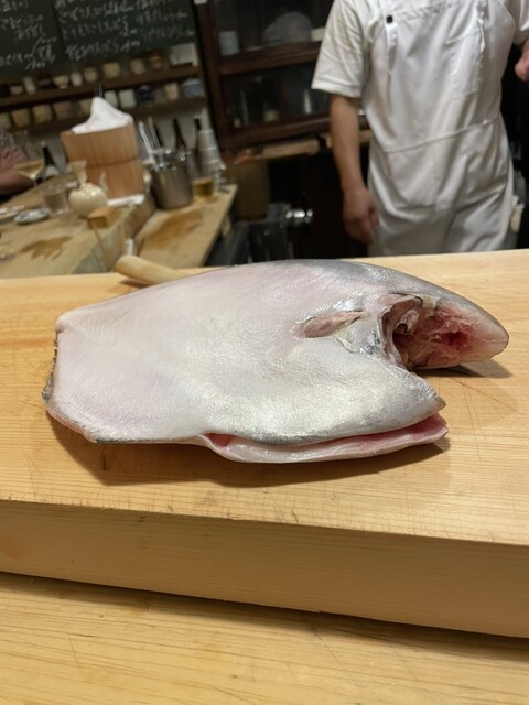 調理前の“グジ”がちらっと見えます。グジ→甘鯛…。いやいや、グジはグジです。唯一無二!ねっちりとした身、ほのかに甘さ感じる味わい。やはりグジはグジ、甘鯛と表現するには惜しい気がします。