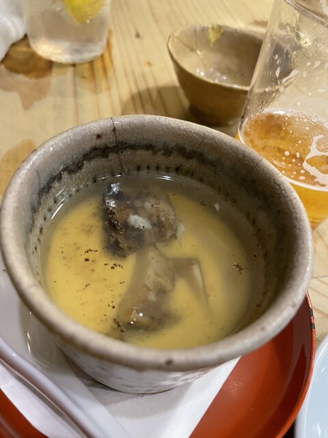 “鮑の茶碗蒸し”、チョコっと鮑が覗いていますが、中にゴロッと大きな塊が潜んでいます。歯応え、鮑の味わいがガッツリ。こんな茶碗蒸し知りません!