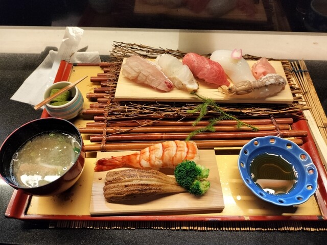 自分のイチオシのお店です。 いつもはお寿司定食が一番おすすめで期待していたのですが、 今日はお昼のオーダーストップ ギリギリだったため 岩料理ランチになりました。 岩料理ランチは色々な小鉢を楽しめる 定食です 。ぷりぷりの海老のお刺身と天ぷら もついており ワクワクです 。また小鉢も結構 凝った小鉢で蟹味噌餡の茶碗蒸しも結構 いけてます。あと豚の角煮や煮物などもとっても美味しいです。