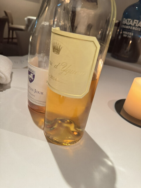 貴腐ワインの最高峰、シャトーデュケム、ソムリエのお勧めロゼダンジュールを頂きました。ロゼダンジュールは紅茶の様な香りで美味しかったです。